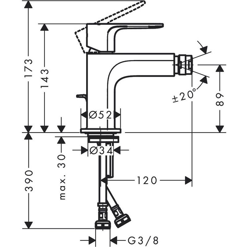 Смеситель Hansgrohe Rebris E для биде, с набором для слива, черный матовый, 72211670состоит из: однорычажный смеситель для биде, слив/перелив