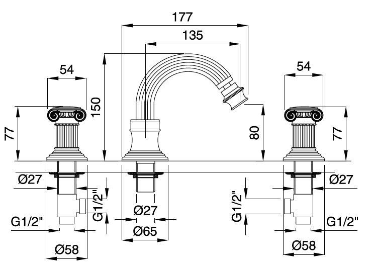 Смеситель для биде на 3 отверстия Cezares OLIMP-BBS2-01-Sw