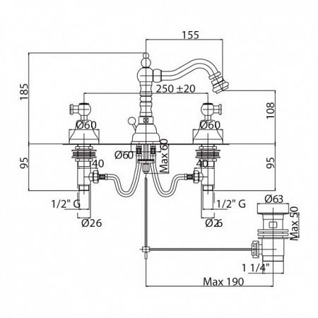 Смеситель для биде на три отверстия, бронза Cezares GOLF-BBS2-02 купить