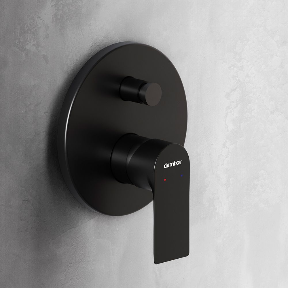 Смеситель для ванны и душа Damixa Apollo 477100300 черныйКорпус смесителя 1 шт.; монтажная часть; инструкция изделия. Встраиваемый однорычажный смеситель для ванной и душа, оригинальный дизайн, переключение на ванну или душ вакуумным вытяжным переключателем