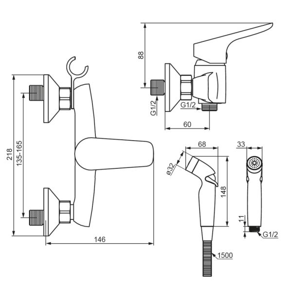 Смеситель для душа Damixa Jupiter 778000300 черныйКорпус смесителя 1 шт.; гигиенический душ 1 шт.; держатель для гигиенического душа 1 шт.; шланг с прокладками 1 шт.; инструкция. Черный матовый, смеситель для гиг душа, ручной гиг душ с регулировкой напора