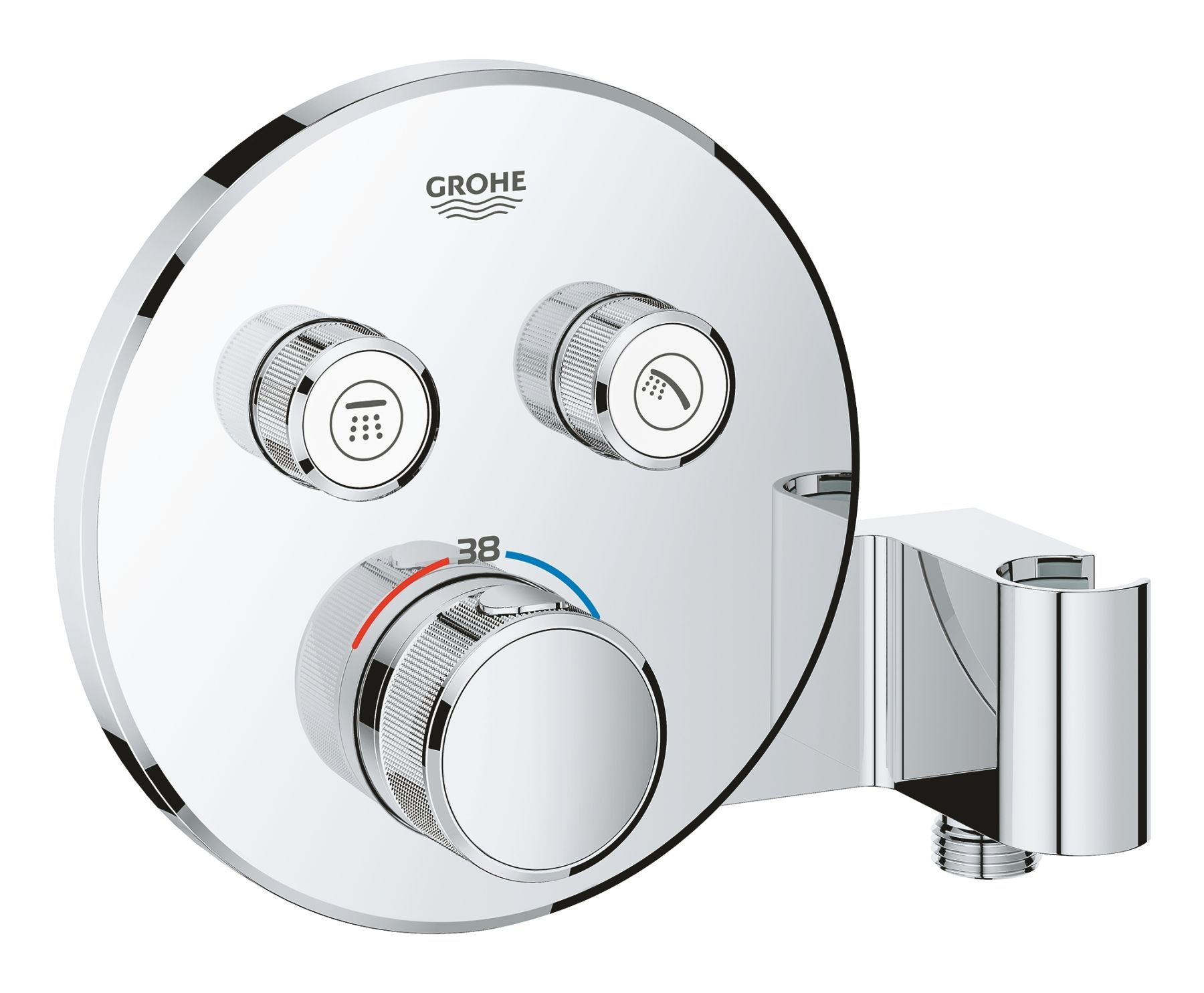 Смеситель для душа Grohe Grohtherm SmartControl хромТЕРМОСТАТ GROHTHERM SMARTCONTROL СО ВСТРОЕННЫМ ДЕРЖАТЕЛЕМ РУЧНОГО ДУША - ПРЕВРАТИТЕ ПРИНЯТИЕ ДУША И ВАННЫ В НАСТОЯЩЕЕ НАСЛАЖДЕНИЕ С ЭТОЙ ИННОВАЦИОННОЙ СИСТЕМОЙ УПРАВЛЕНИЯПривнесите простоту и точность управления в ваши ванну и душ вместе с умным термостатом со встроенным держателем ручного душа, который выполнен в ясном космополитичном дизайне. Инновационная технология SmartControl позволит вам регулировать напор воды с помощью нажатия и поворачивания кнопки. Два вентиля позволят вам переключаться или совмещать верхний и ручной души или душ и ванну. Встроенная технология GROHE TurboStat предотвратит неприятные скачки температуры. Маркировка EasyLogic и иконки на кнопках с заменяемыми символами делают использование термостата интуитивно понятным. Кнопка GROHE SafeStop позволит вам установить максимальную температуру в 38°C, что предотвратит ошпаривание, а ограничитель температуры GROHE SafeStop Plus предоставит опцию увеличить максимум температуры до 43°C для большего уровня безопасности. Водосберегающая технология GROHE EcoJoy поможет сократить расход воды без ущерба для комфорта при принятии душа. Благодаря системе GROHE QuickFix термостат легко установить. Тонкий профиль термостата делает его поддержание в чистоте очень простым, а надежное хромовое покрытие GROHE StarLight сохранит свой блеск на долгие годы. Благодаря его утонченному современному дизайну, термостат сможет усовершенствовать дизайн вашей ванной комнаты. Пожалуйста, обратите внимание, что этот продукт должен быть установлен в комбинации с универсальной встраиваемой частью GROHE Rapido SmartBox (35600000). комплект верхней монтажной части для GROHE Rapido SmartBox 35600000 (универсальной встраиваемой части)