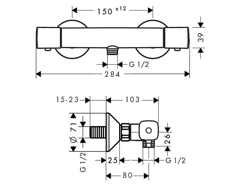 Штихмас (монтажный размер): 150±12 мм;