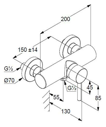 - однорычажный смеситель для душа DN 15