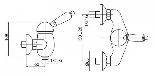 Смеситель для душа однорычажный, золото Cezares ELITE-DM-03/24-Bi