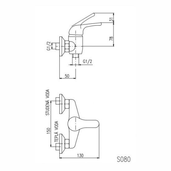 Смеситель для душа Rav Slezak Sazava SA080.5 хромСмеситель для душа, монолитный излив, металлическая рукоятка, KA3502E керамический катридж 35 мм, стандарт подводки 1/2.