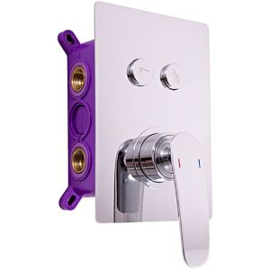 Смеситель для душа Rav Slezak Tigris TG186BOX хромСмеситель для душа с кнопочными переключателями Rav Slezak Tigris TG186BOX - представляет собой устройство для излива воды в верхний и ручной душ. Состоит из скрытой части, которая монтируется внутрь стены и наружной панели с рычажным вентилем и двумя кнопками. К скрытой части осуществляется жесткая подводка горячей и холодной воды.Особенности конструкции:Внутри смеситель оснащен 35 мм керамическим картриджем KEROX KA3502 венгерского производства. Обладает высокой степенью надежности, а также эффективен от образования извести и ржавчины.Два разнонаправленных вертикально отверстия с резьбой предназначены для направления потоков воды в ручной и верхний душ. Верхний душ обеспечивается напором воды за счет жесткой штанги, а ручной душ - гибкого шланга.Принцип установки:смеситель устанавливается во встраиваемый бокс скрытого монтажа в стене.Конструкция:Покрытие: глянцевый хром.