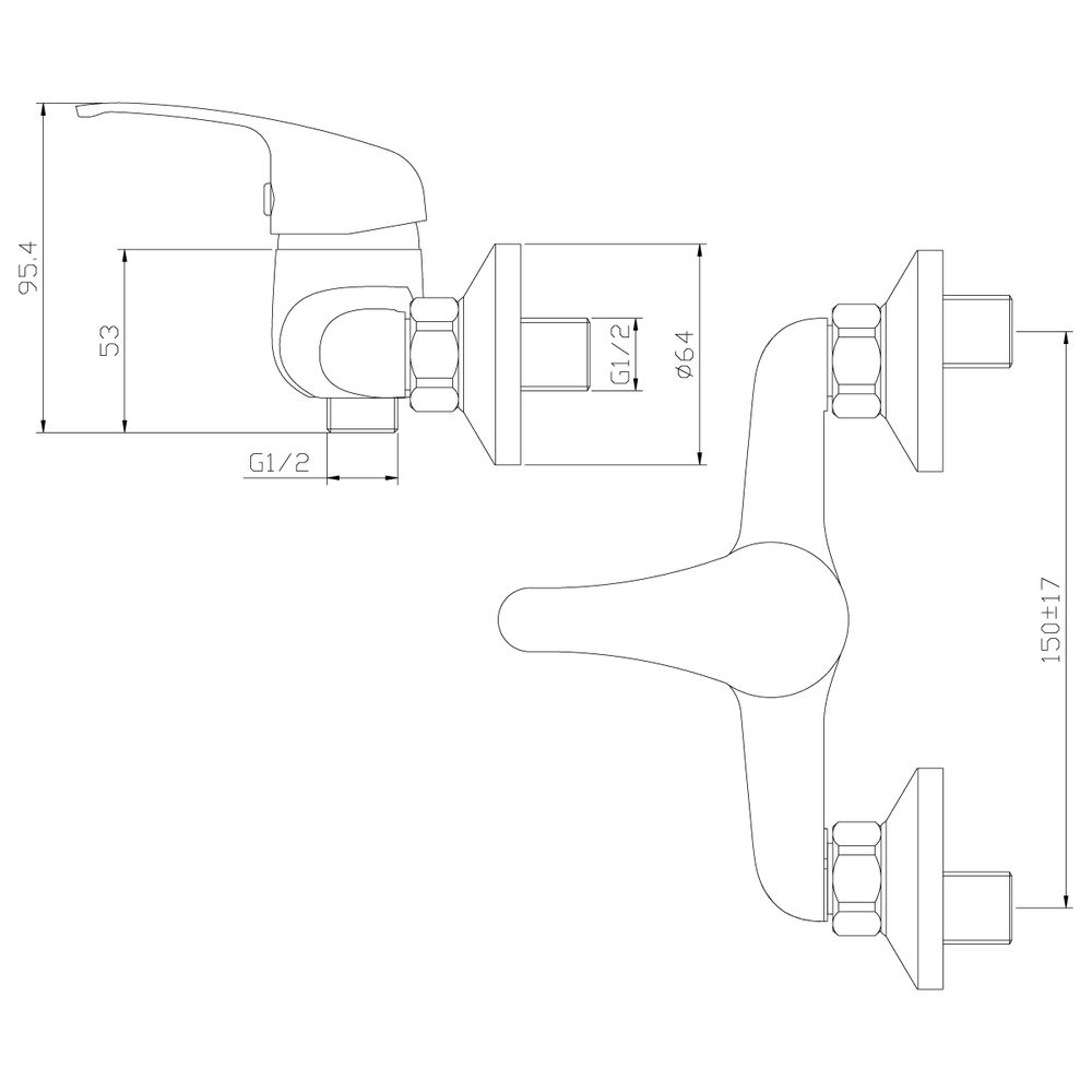 Смеситель для душа Rossinka Y35-41, однорычажный. Аксессуары в комплекте (шланг 1,5 м, настенное крепление, функциональная лейка с функцией легкой очистки). Присоединительная группа (эксцентрики с отражателями) для вертикального крепления.