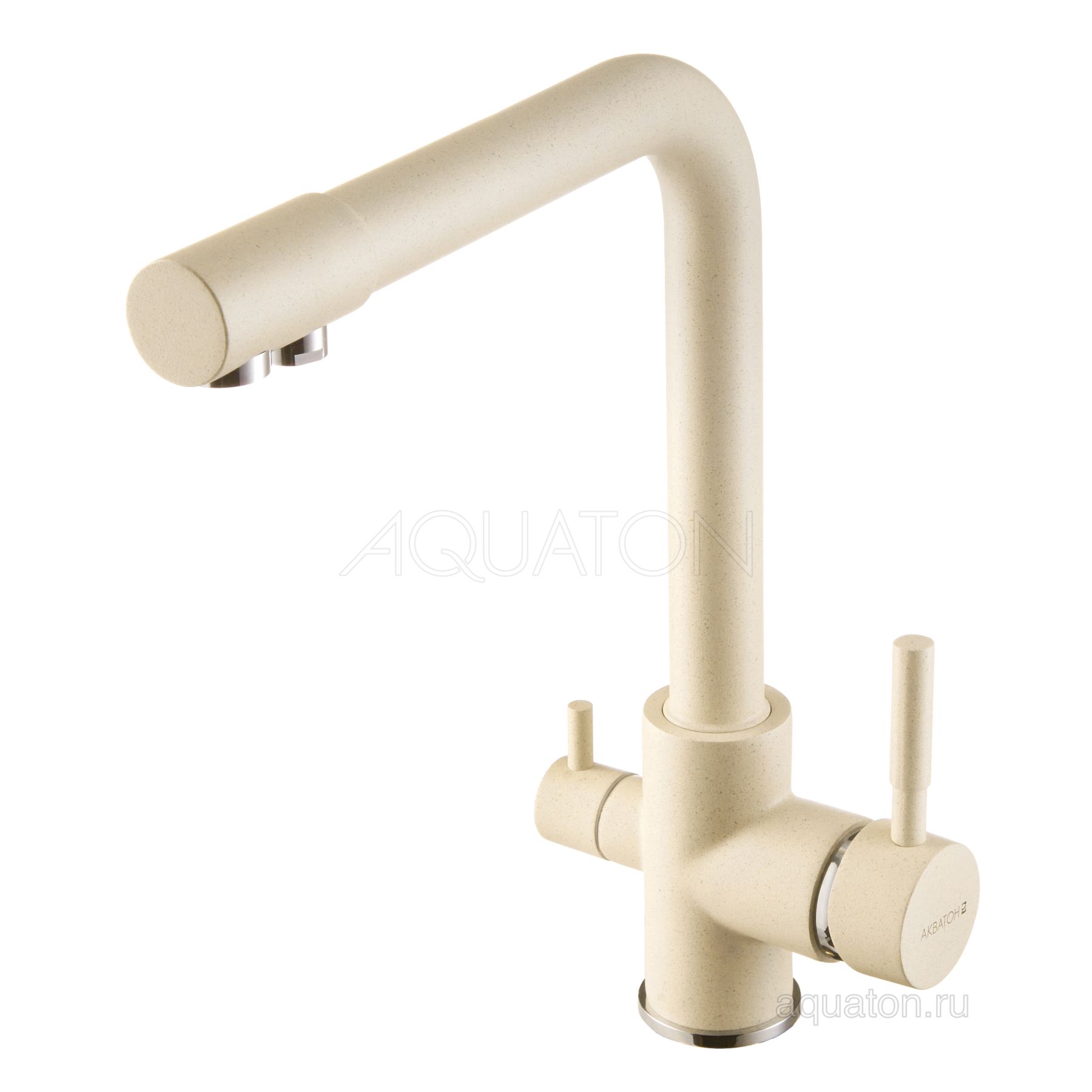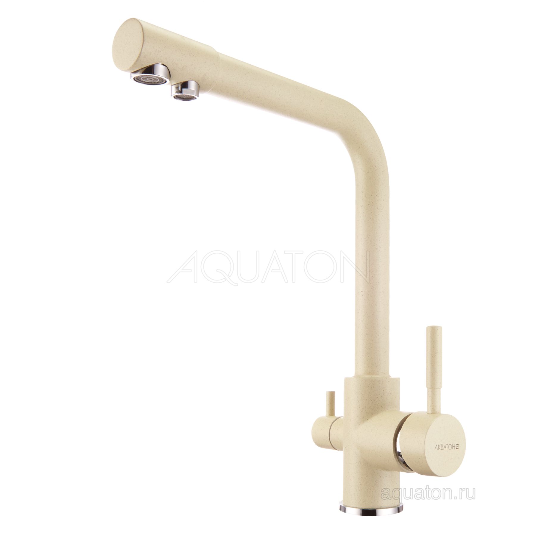 Смеситель Руан для кухонной мойки от компании Акватон. Подключение к фильтру пиьевой воды. Совмещенный излив. Цвет смесителя специально подобран в соответствии с цветом кухонных моек Акватон из литьевого камня. Корпус смесителя выполнен из латуни, что гарантирует долгий срок эксплуатации изделия, сопротивление коррозии и безопасность для человека. Декоративное цветное покрытие отличается высокой силой сцепления с поверхностью смесителя, обеспечивая устойчивость к царапинам и сколам.