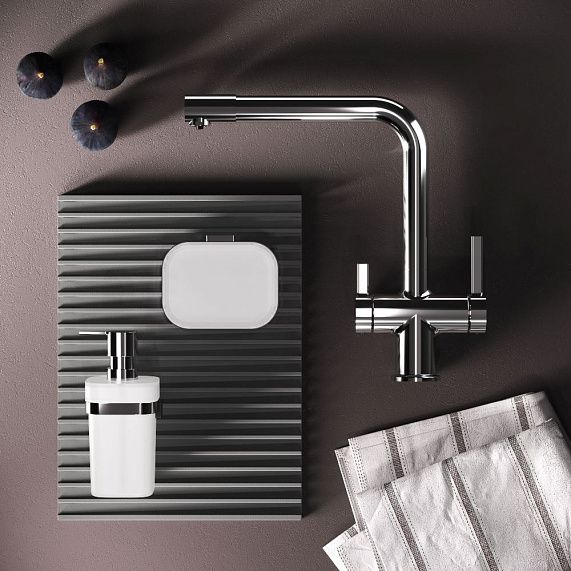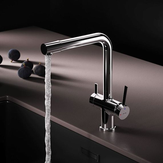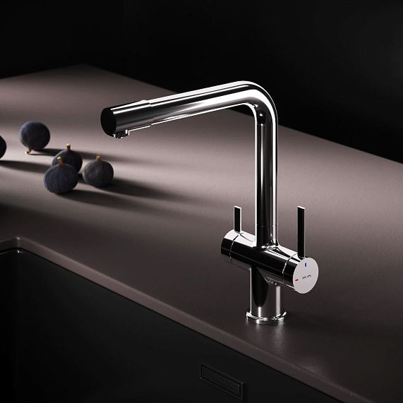 Встречайте долгожданное пополнение нашумевшей коллекции Func — кухонные смесители с оригинальными «фишками», характерными для всей коллекции. Дизайн, характерный только для премиум-сегмента, благодаря собственным дизайнерам бренда теперь представлен и в более доступной ценовой категории. Смеситель оснащён встроенным каналом для подачи питьевой воды. Чтобы получить питьевую воду, воспользуйтесь ручкой, расположенной с левой стороны корпуса; для обычной воды управляйте смесителем привычным образом. Размер (Ш/Г/В): 135x265x298 мм. Материал - нержавеющая сталь, цинк, латунь. Цвет - хром. Тип управления - однозахватный. Излив - поворотный.