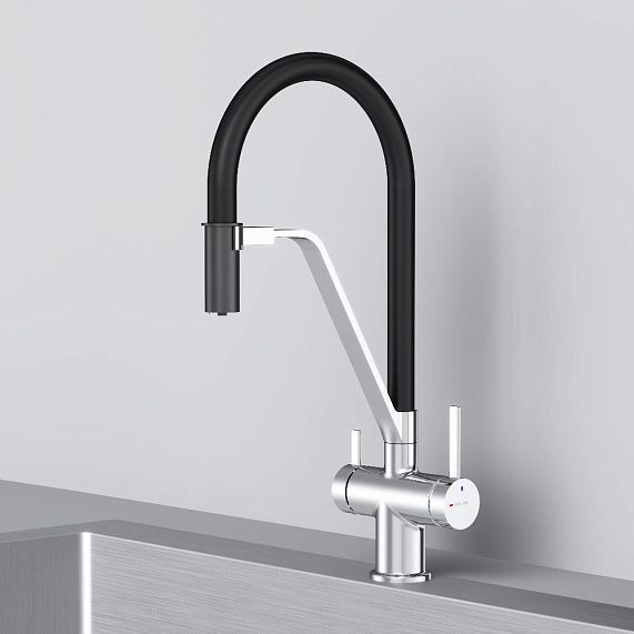 Встречайте долгожданное пополнение нашумевшей коллекции Func — кухонные смесители с оригинальными «фишками», характерными для всей коллекции. Дизайн, характерный только для премиум-сегмента, благодаря собственным дизайнерам бренда теперь представлен и в более доступной ценовой категории. Смеситель оснащён встроенным каналом для подачи питьевой воды. Чтобы получить питьевую воду, воспользуйтесь ручкой, расположенной с левой стороны корпуса; для обычной воды управляйте смесителем привычным образом. Гибкий излив смесителя позволяет справляться с любыми задачами и превращает его в по-настоящему профессиональный инструмент на вашей кухне. Размер (Ш/Г/В): 135x237x453 мм. Материал - нержавеющая сталь, цинк, латунь. Цвет - хром. Тип управления - однозахватный. Излив - гибкий.