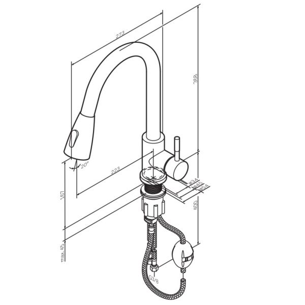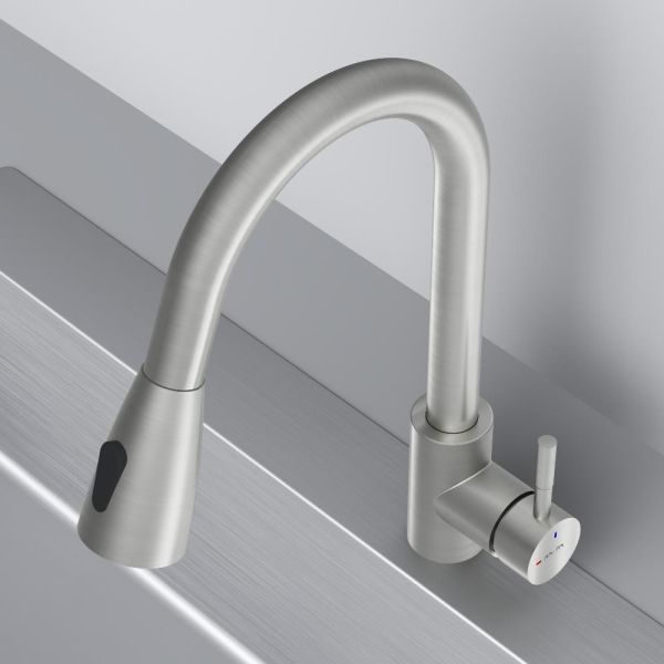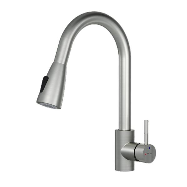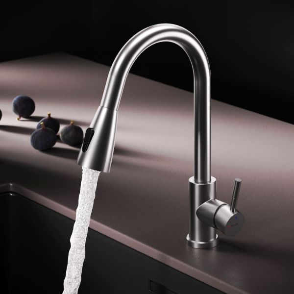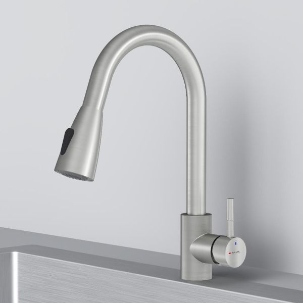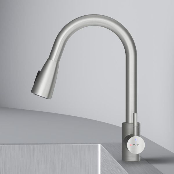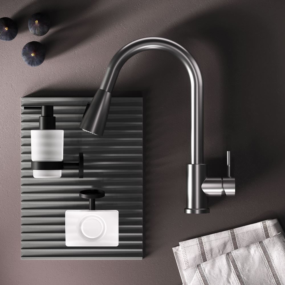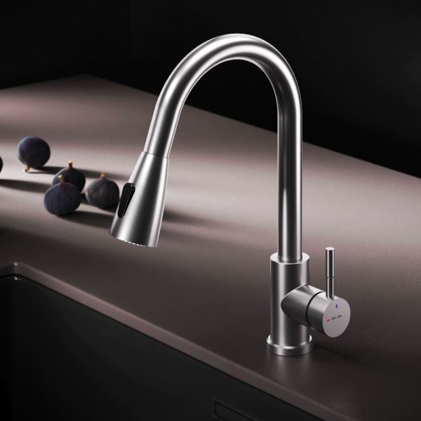 Смеситель оборудован вытяжным гибким изливом, который позволит с легкостью справится с такими задачами, как мытье раковины, наполнение больших емкостей и мытье овощей и фруктов. В зависимости от задачи вы можете легко переключаться между обычным потоком воды и режимом «душ».