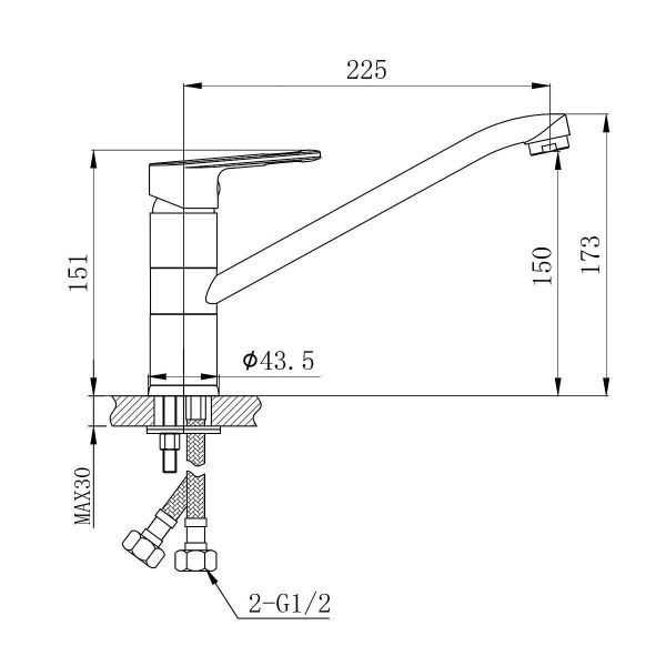 Смеситель для кухни Aquanika Basic AQB4236CR изготовлен из высококачественной латуни и оснащен поворотным изливом длиной 225 мм. Высота излива 150 мм. В комплекте идет гибкая подводка с подключением 1/2" и комплект крепежа необходимый для установки изделия.