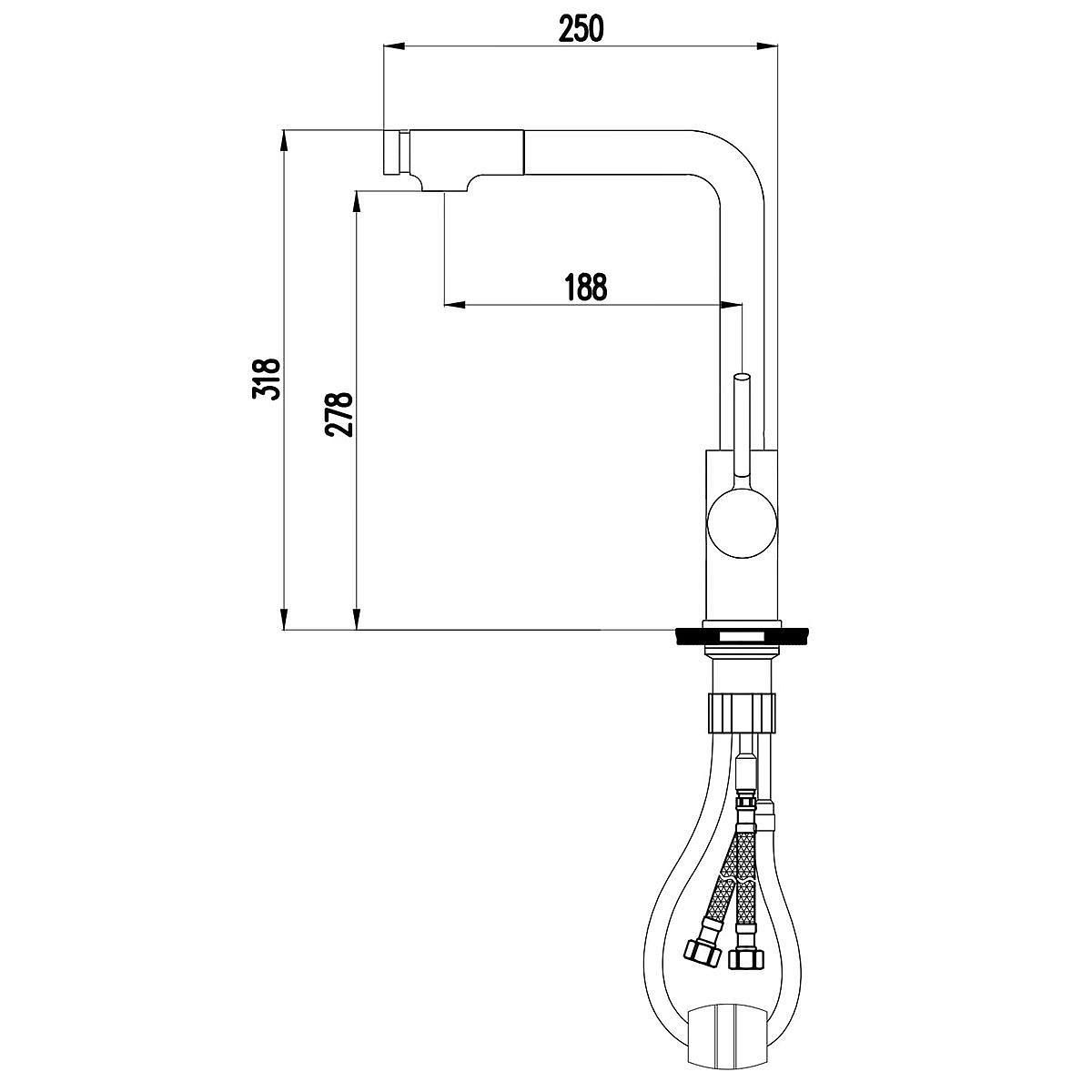 Смеситель для кухни Aquanika Vivo AQV4810CR изготовлен из высококачественной латуни и оснащен поворотным выдвижным изливом длиной 188 мм. Высота излива 278 мм. В комплекте идет гибкая подводка с подключением 1/2" и комплект крепежа необходимый для установки изделия.