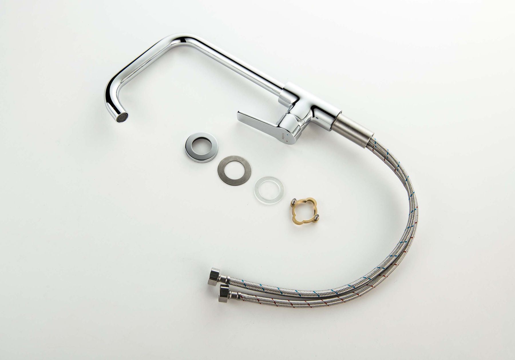 Габариты (ВхШ,см): 38,6х22,0Высота излива (см): 30,6Длина излива (см): 29,6Аэратор: в комплектеГибкая подводка в комплекте: ДаДлина гибкой подводки (см): 60Тип резьбового соединения: M10Стандарт подводки: 1/2"Вращение излива: поворотныйТип управления: рычажныйНазначение: Для кухонной мойкиКоличество монтажных отверстий: 1 отверстиеМеханизм: Керамический картридж WANHAIДиаметр картриджа (мм): 35