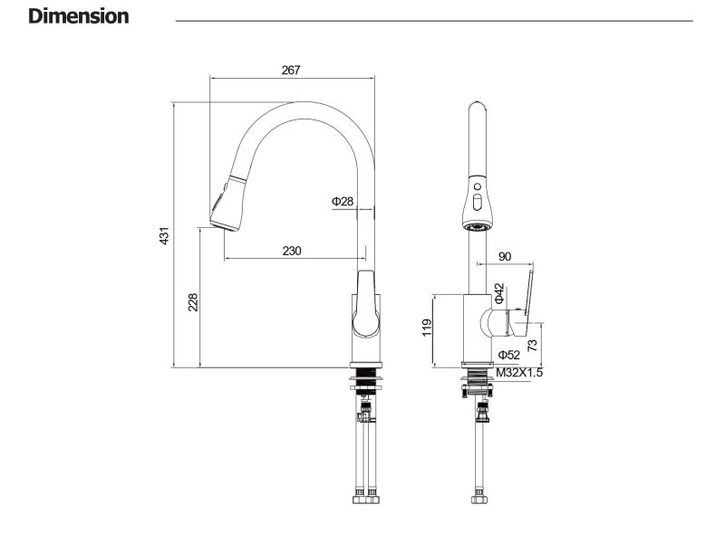• поворотная головка выдвижного излива на 360 градусов из нержавеющей стали