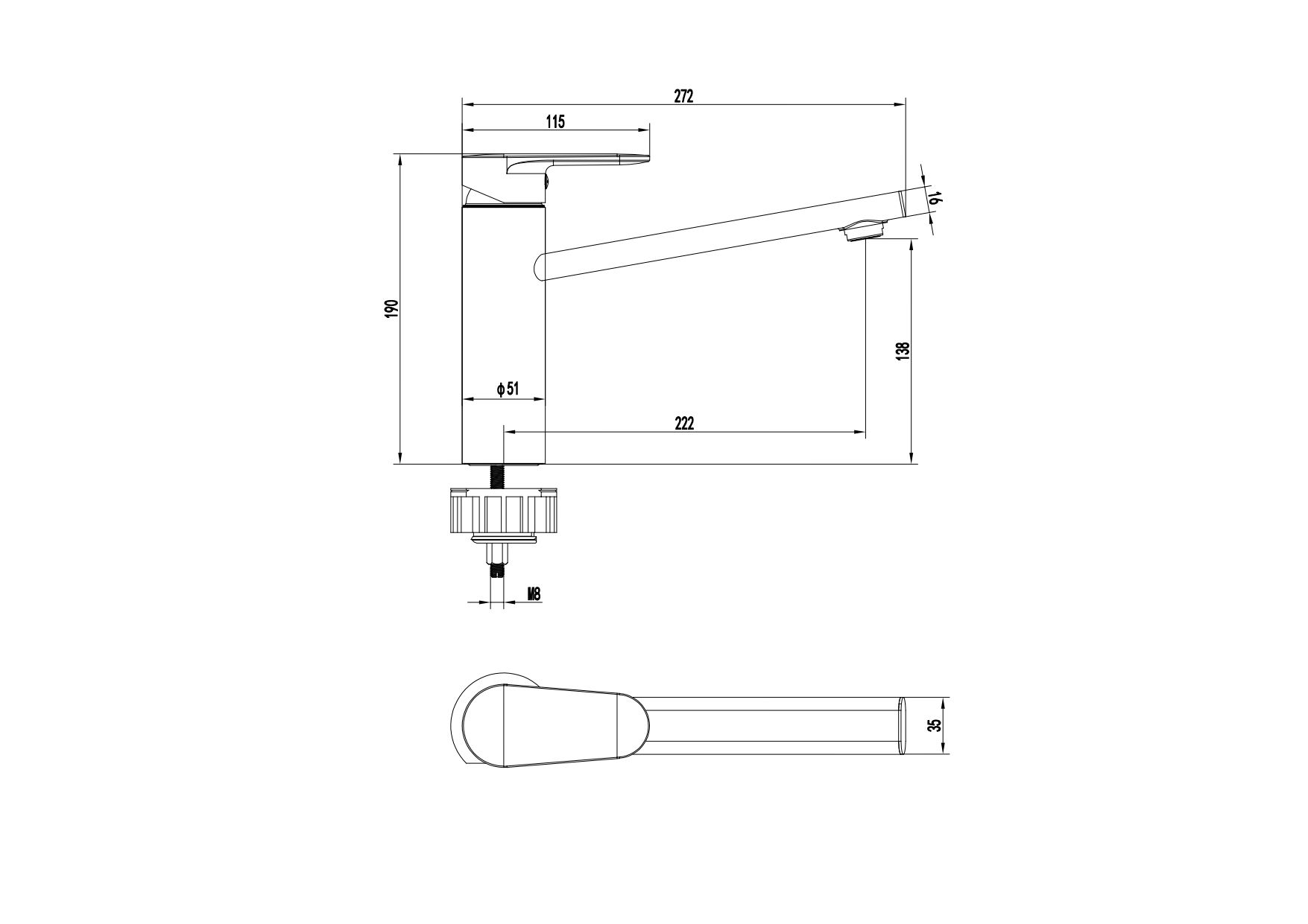 • оснащен длинным изливом, подходит для большинства кухонных моек