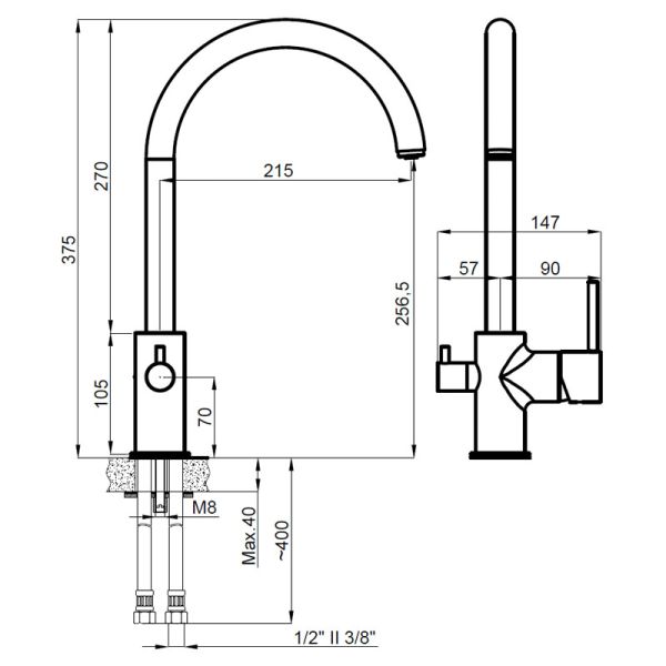 Высота смесителя:37.5