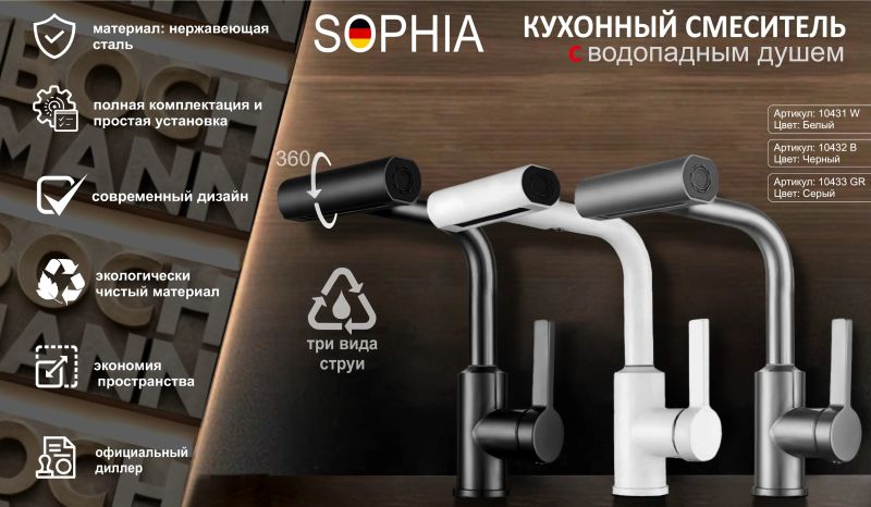 Смеситель для кухни Boch Mann Sophia W BM10431 с водопадным душем белый купить
