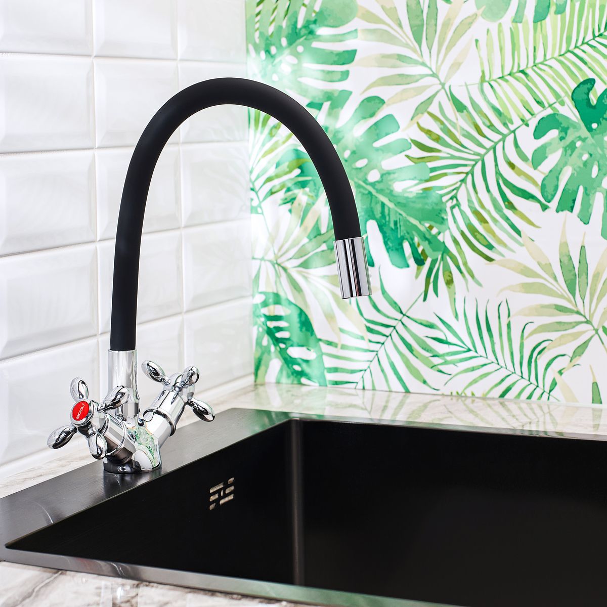 Смеситель для кухни BOOU BA5318-1F-E352A-B702 хром/чёрный купить
