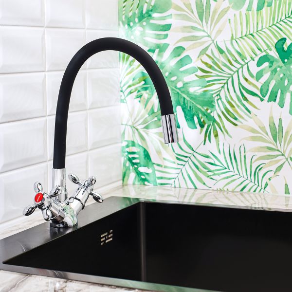 Смеситель для кухни BOOU BA5318-1F-E352A-B702 хром/чёрный