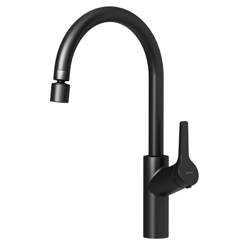 Смеситель для кухни Damixa Eclipse 310722300 высокий черныйСмеситель для кухни Damixa Eclipse 310722300, с двухрежимным регулируемым аэратором в ультрамодном матовом черном исполнении. Современные формы и качественные материалы, которые станут идеальным завершением как классической, так и современной кухни. Неверотяная простота управления: керамический картридж Light Flow обеспечивает плавное управление ручкой смесителя и оптимальную регулировку температуры и мощности потока. Безупречный внешний вид: невероятно тактильное покрытие Soft touch имеет благородный матовый блеск. Благодаря усиленным защитным свойствам, глубокий черный цвет не стирается и не тускнеет. Два режима подачи воды для максимального удобства использования: струя и душ. Переключение режимов осуществляется путем вращения кольца излива. Экономия ресурса: уникальная разработка Damixa, аэратор EcoSave, насыщает струю воды воздухом, что позволяет сократить расход практически в два раза. Длительная гарантия: продукт прослужит вам минимум 10 лет