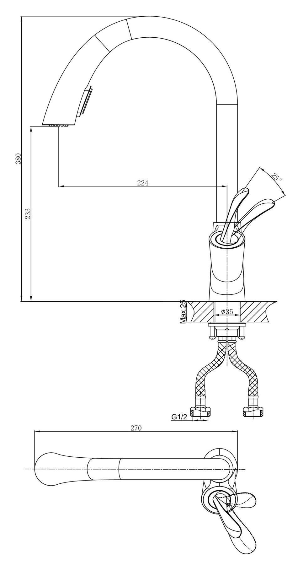 Смеситель для кухни DQ Venice Baciano с выдвижной лейкой хром DA1032541
