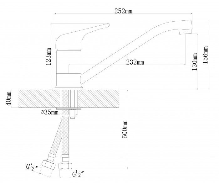 • Высота смесителя: