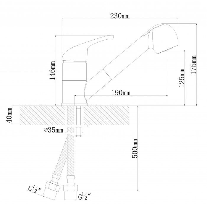 Смеситель для кухни Dr. Gans Соната с выдвижным изливом базальт