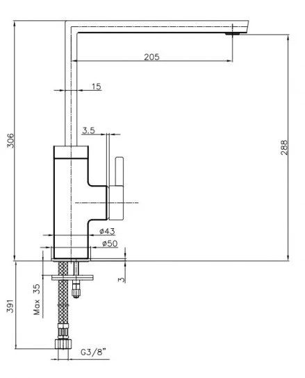 - Длина излива: 20.5 см