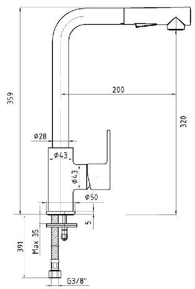 - Длина излива: 20 см