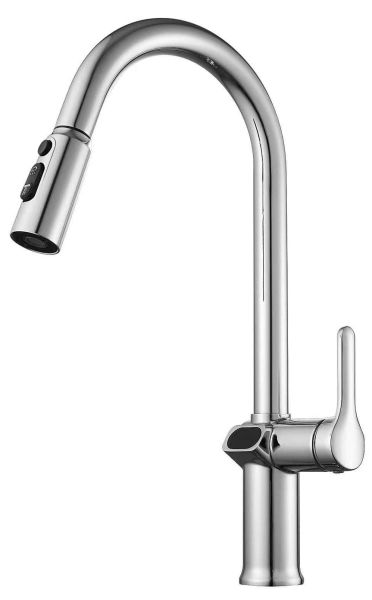 Смеситель для кухни вытяжной с дисплеем, арт. K15 LED: Технологичность и стиль для современной кухни.Хотите сделать свою кухню еще более функциональной и стильной? Смеситель K15 LED - это идеальный выбор! Его вытяжной излив позволит легко заполнить даже самые высокие кастрюли, а встроенный дисплей добавит изюминку в интерьер. Три режима аэрации позволят настроить поток воды под свои нужды. Корпус из латуни и хромированное покрытие гарантируют долговечность и привлекательный внешний вид.Преимущества:Вытяжной излив: удобно заполнять любую посуду.