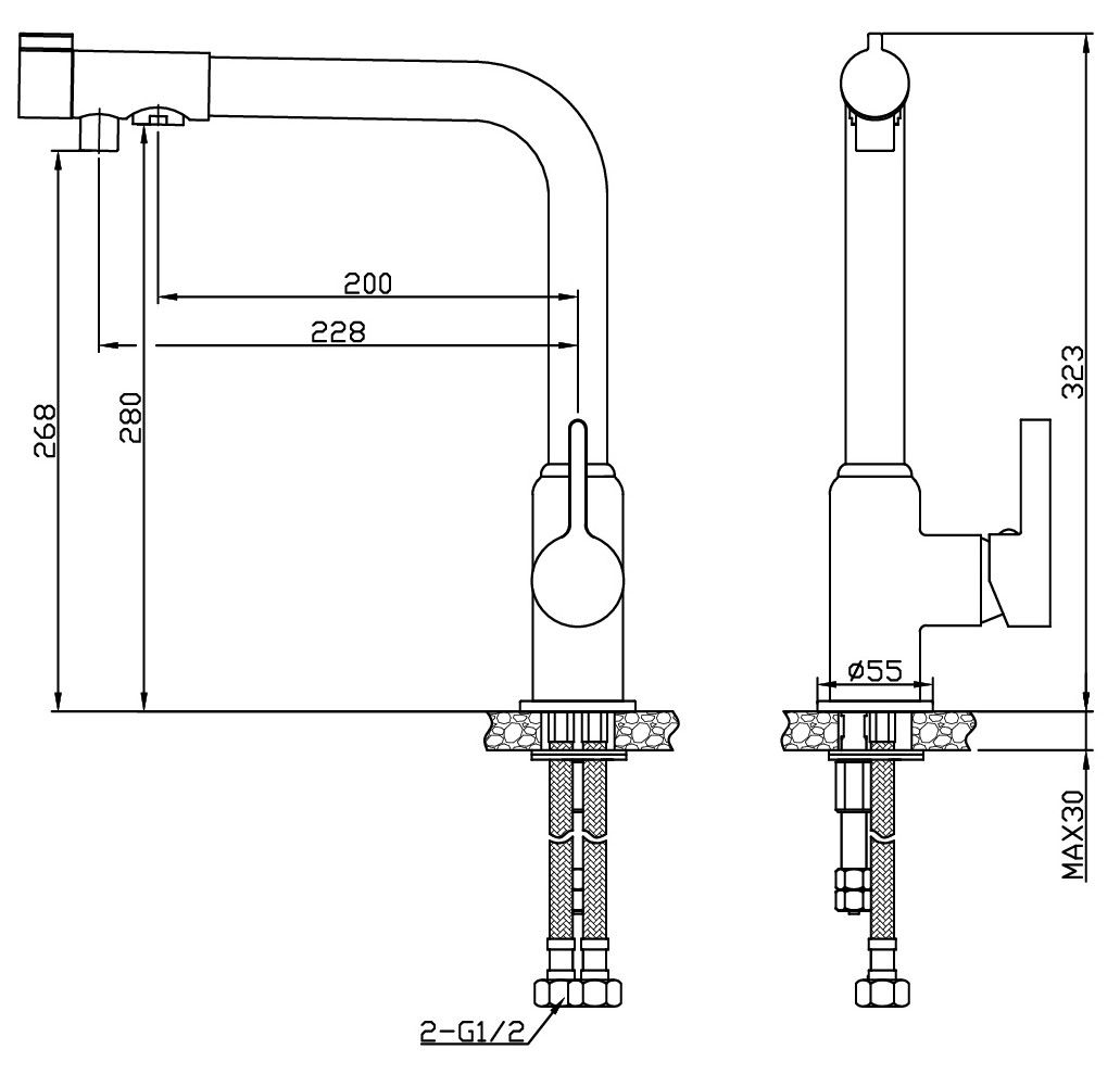 Смеситель для кухни, R-излив, Black, с подключением к фильтру, арт. K22 B: Стильный и функциональный.Смеситель K24: Практичный смеситель из нержавеющей стали с Г-образным изливом и функцией подключения к фильтру. Длинный излив 25 см обеспечивает удобство использования. Надежный картридж и прочная конструкция гарантируют долгий срок службы. Идеальный выбор для современной кухни.