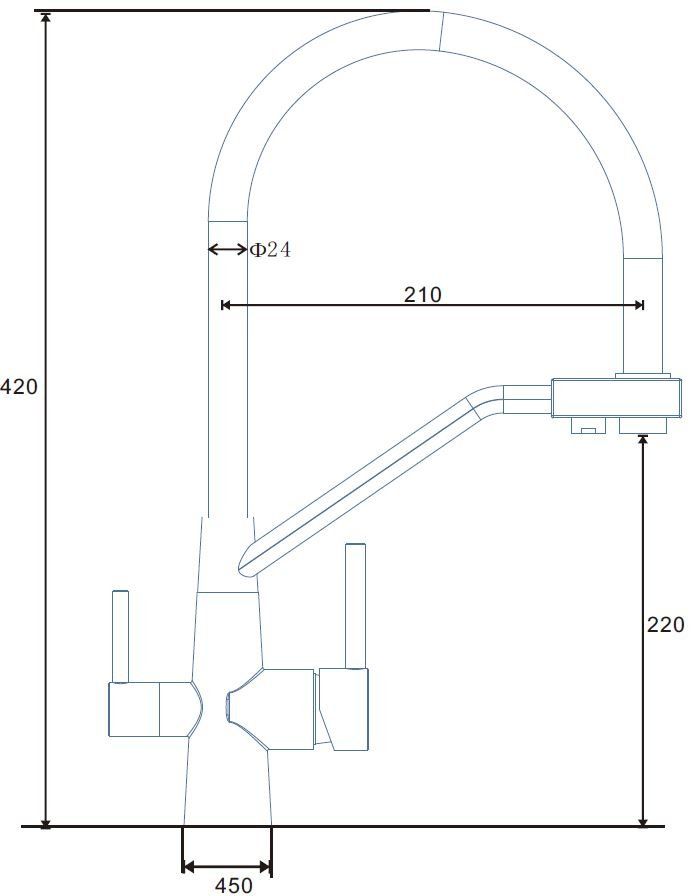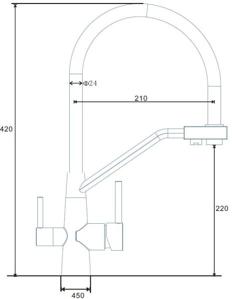 Смеситель для кухни, R-излив, Black, с подключением к фильтру, арт. K22 B: Стильный и функциональный.Смеситель K25 B: Стильный черный смеситель с гибким изливом из нержавеющей стали и функцией подключения к фильтру. Сочетание черного цвета и стали создает современный вид. Удобный излив 24,5 см и возможность фильтрации воды делают его идеальным для современной кухни.