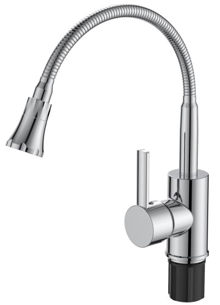 Смеситель для кухни с гибким изливом, арт. KF519: Универсальность и удобство в каждой детали.Ищете смеситель, который идеально впишется в любую кухню и сделает ее использование еще более комфортным? Смеситель с гибким изливом KF519 - это именно то, что вам нужно! Его хромированный корпус из прочного полимерного сплава придает ему стильный внешний вид, а гибкий излив длиной 26 см позволяет легко добраться до любой точки раковины. Двухрежимный аэратор "колокол" обеспечит комфортную работу.Преимущества:Универсальный дизайн: подходит к любому интерьеру.