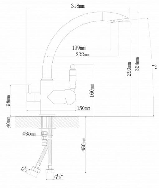 Смеситель для кухни Florentina Шале с подключением под фильтр шампань купить