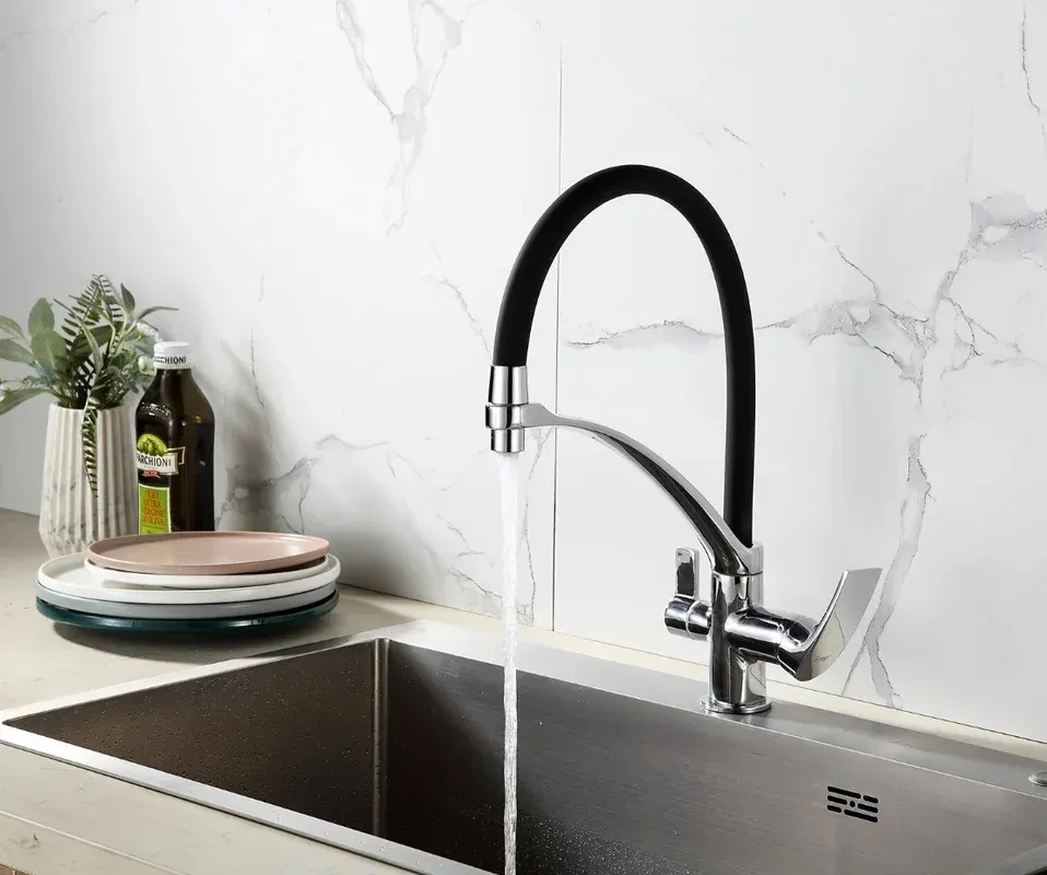 Гибкий излив более маневренный, чем обычный, и позволяет настроить высоту и угол излива под любые нужды