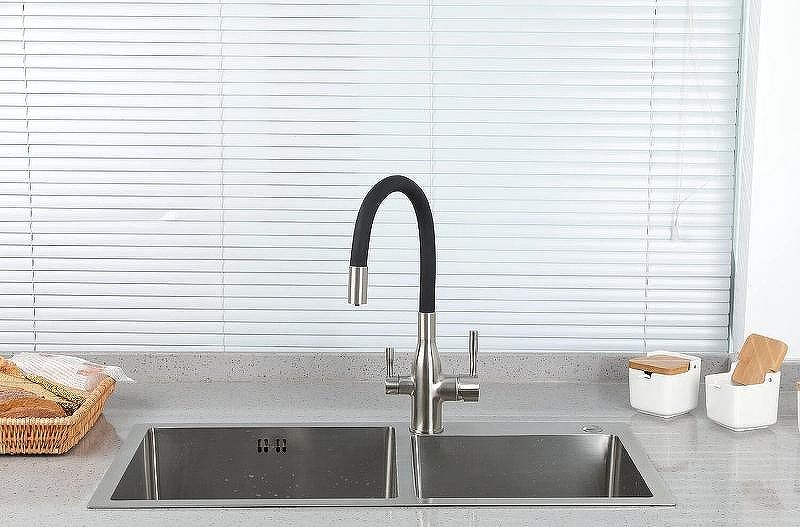 Излив: поворотный, гибкий, с каналом для питьевой воды.