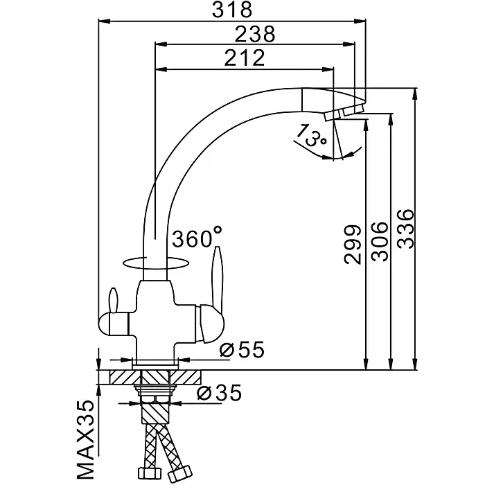 Гибкий излив:нет