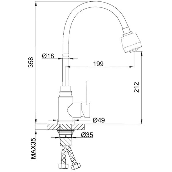 Высота смесителя:35.8