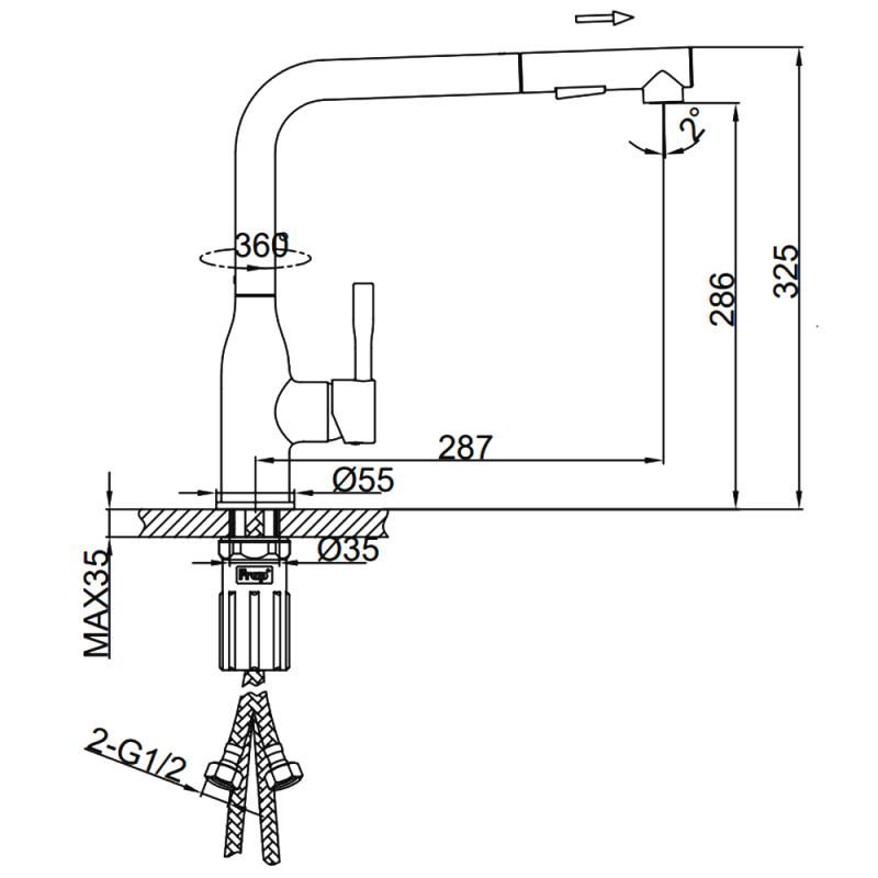 Смеситель для кухни Frap F6096-9 Оружейная сталь