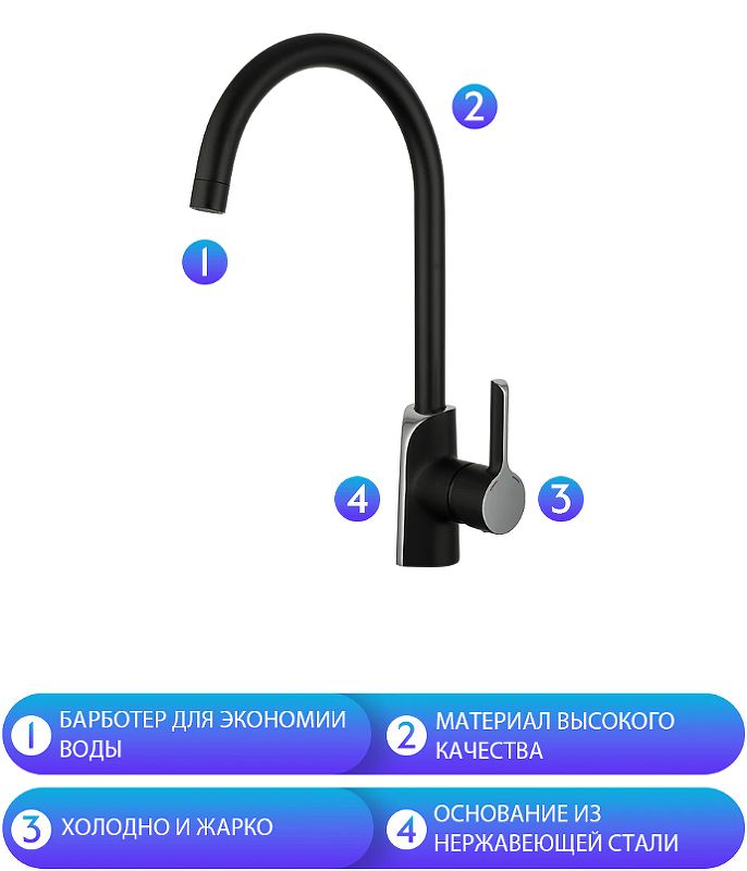 Смеситель для кухни Gappo G4003-6 чёрный/хром