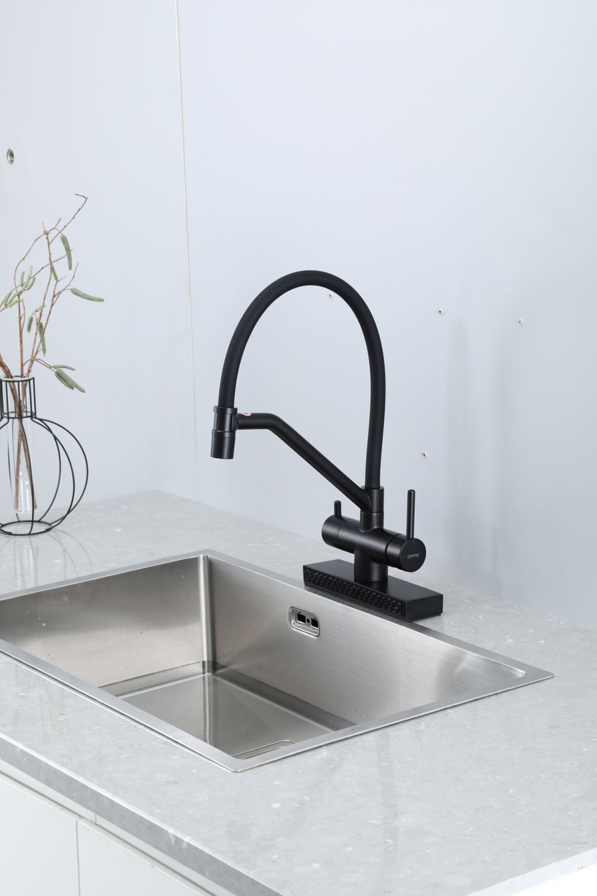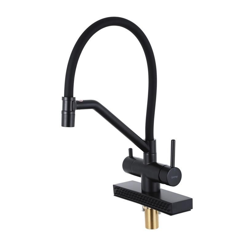 Смеситель для кухни Gappo G4098-6 с водопадом и гибким изливом чёрный