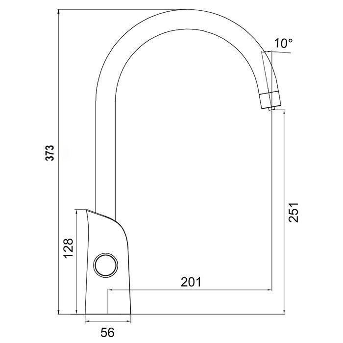 - Длина излива, мм: 201