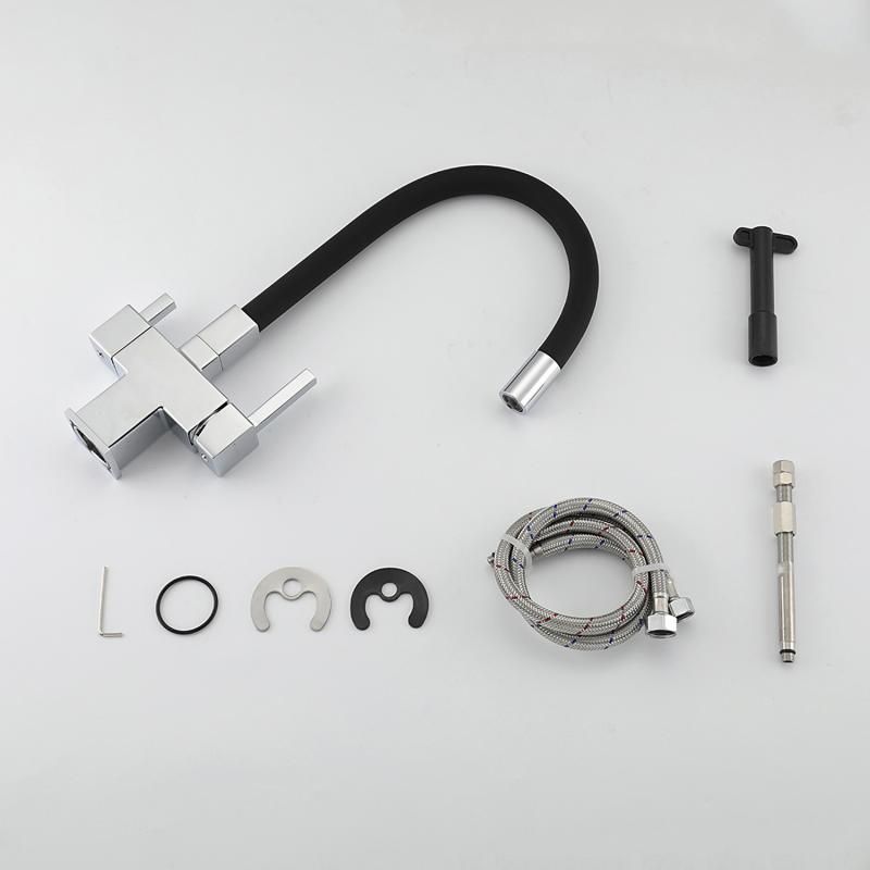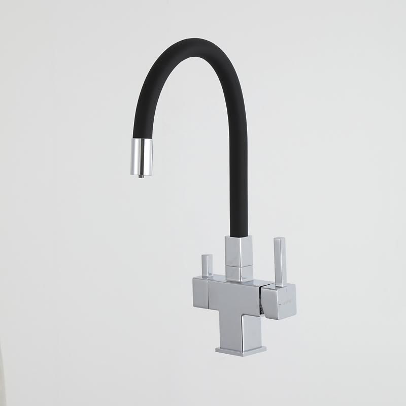 Смеситель для кухни Gappo G4395-30 с подключением фильтра питьевой воды и гибким изливом хром/чёрный