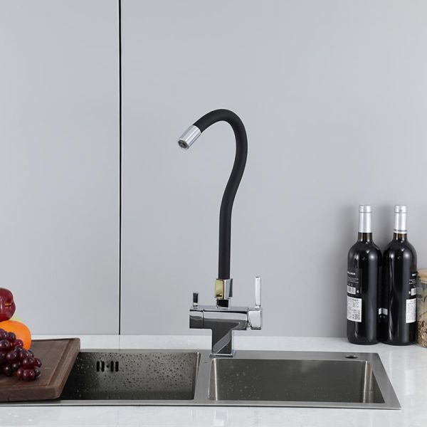 Смеситель для кухни Gappo G4395-30 с подключением фильтра питьевой воды и гибким изливом хром/чёрный купить