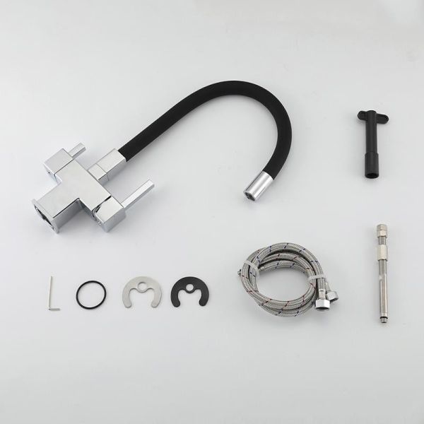 Корпус смесителя выполнен из латуни, что гарантирует его прочность и долговечность. Излив смесителя поворачивается на 360 градусов, что позволяет использовать его для различных целей.