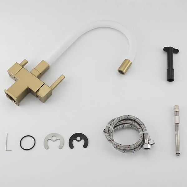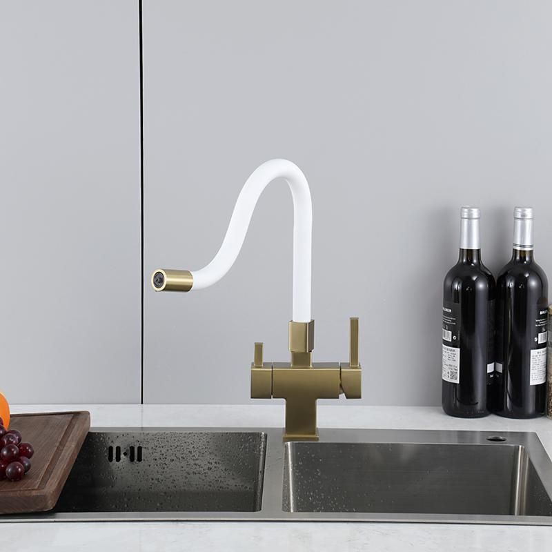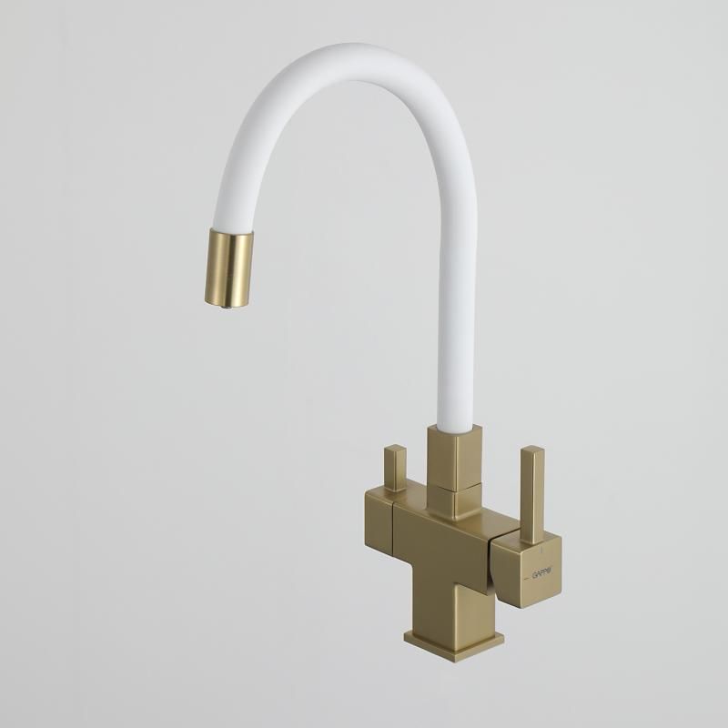 Смеситель для кухни Gappo G4395-33 с подключением фильтра питьевой воды и гибким изливом золото/белый