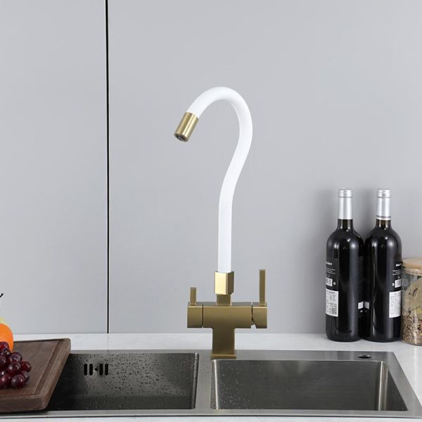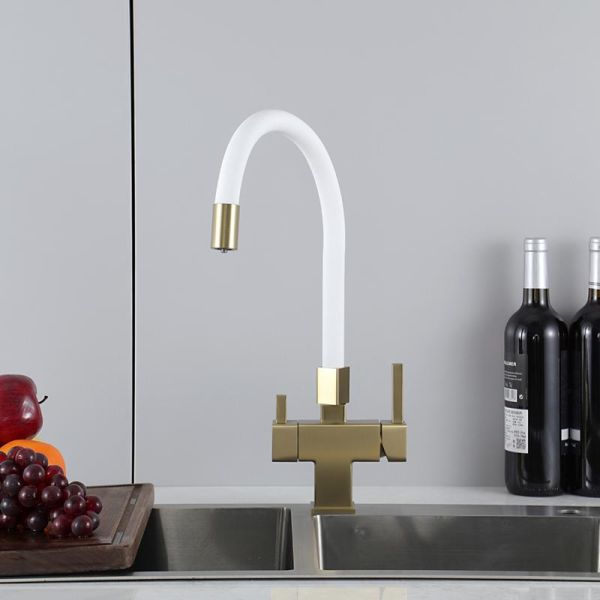 Смеситель для кухни Gappo G4395-33 с подключением фильтра питьевой воды и гибким изливом золото/белый купить