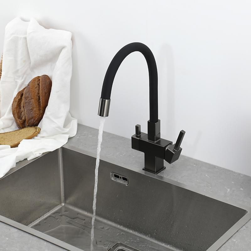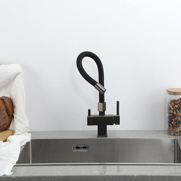 Смеситель для кухни Gappo G4395-39 с подключением фильтра питьевой воды и гибким изливом оружейная сталь